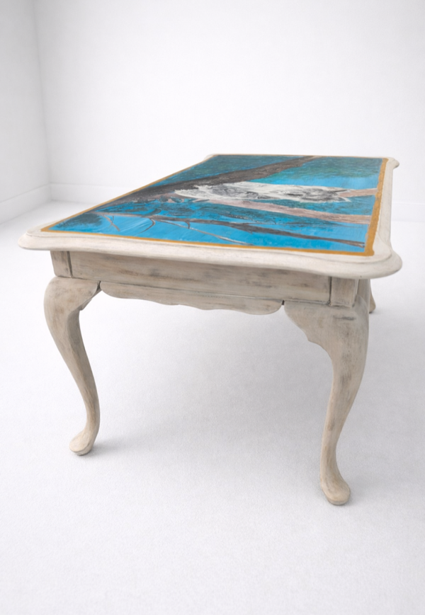 Dit gerestaureerde Queen Anne tafeltje is met zorg en liefde nieuw leven ingeblazen en omgevormd tot een uniek kunstobject. Het klassieke meubel is geüpcycled met respect voor zijn elegante vorm en verfijnde lijnen, en verrijkt met een handgeschilderd schiderij van een Koala.