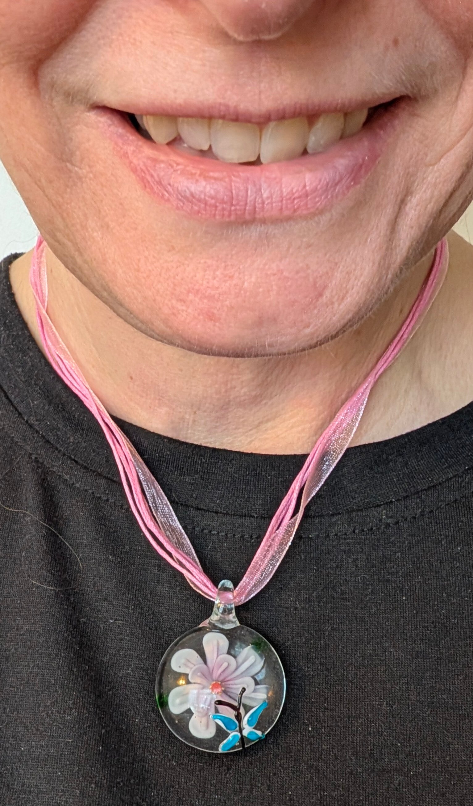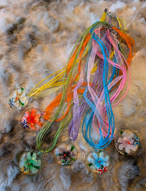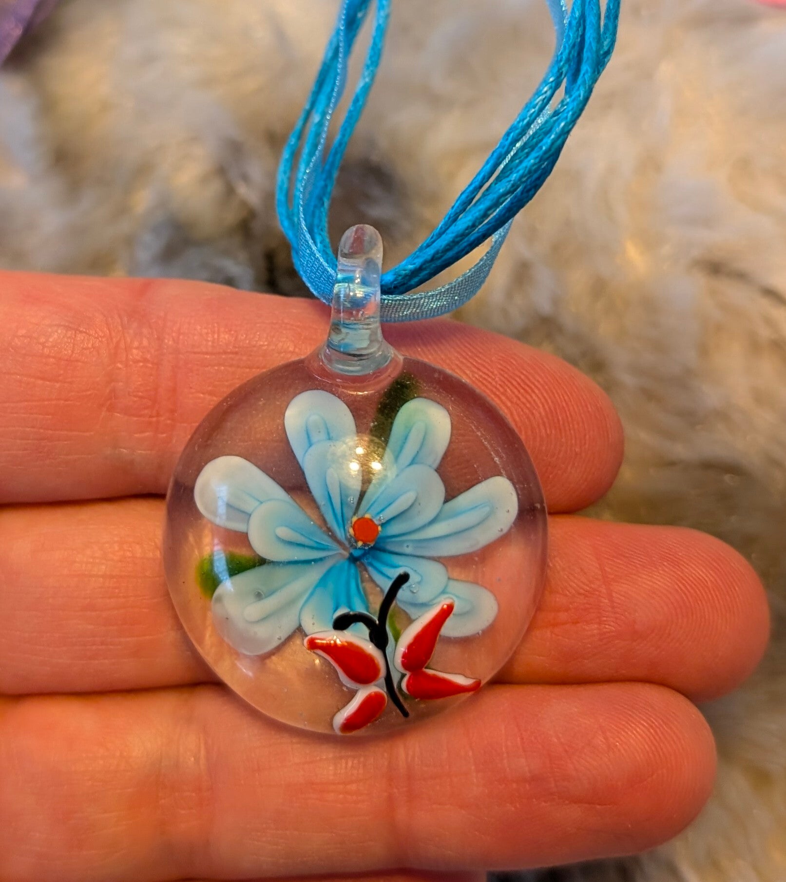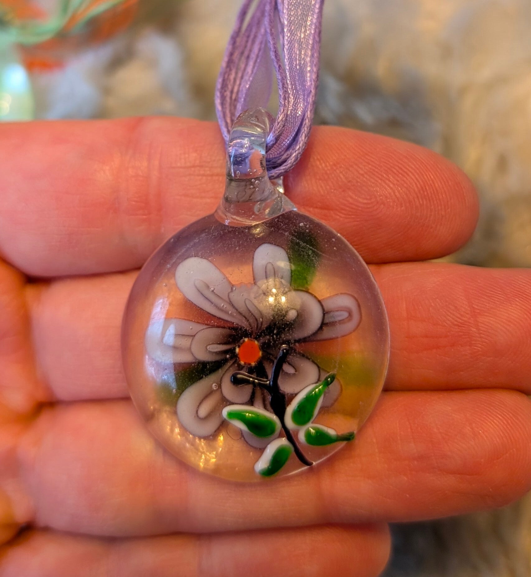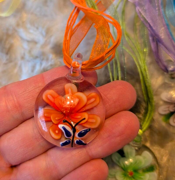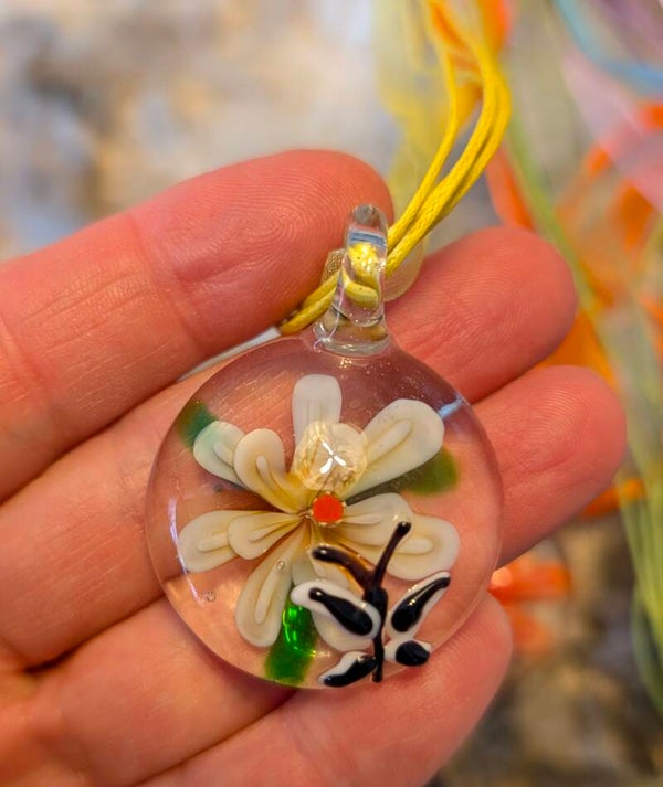 Deze hanger vangt een klein moment van natuur in glas: