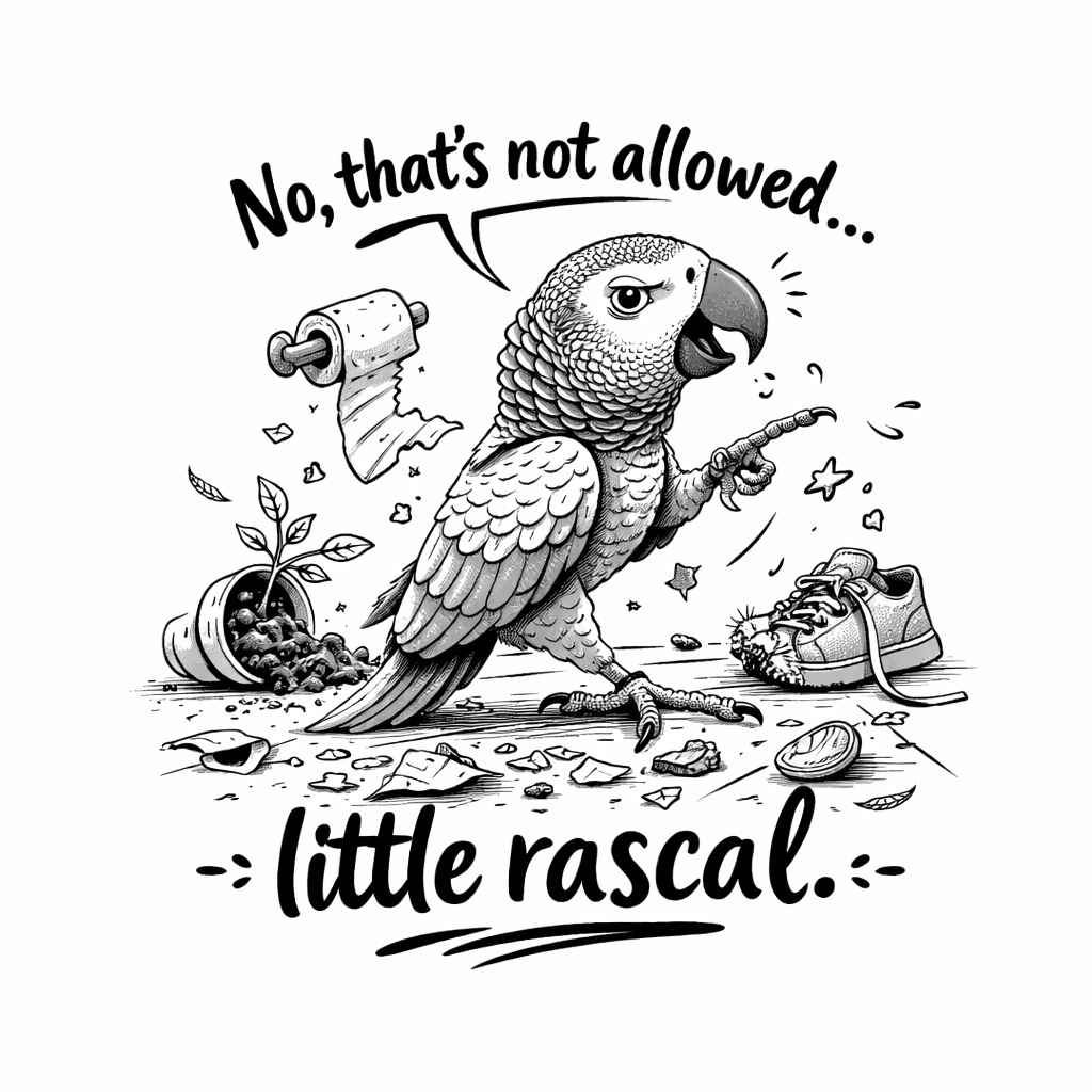 Wie met een papegaai samenleeft, weet dat ze niet alleen luisteren...ze praten ook terug. En soms zelfs precies zoals jij dat zou doen. "No, that´s not allowed...little rascal!" - een uitspraak die Japie maar al te goed kent en met een komische flair tot leven brengt.